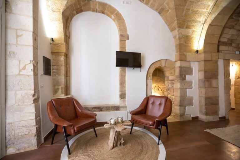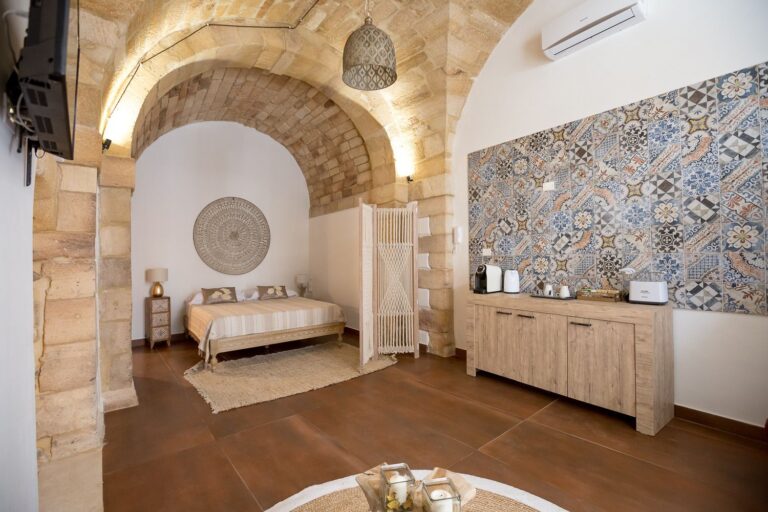 If you’re looking for a real Ortigian experience, this picturesque apartment will make you dream. Arriving at your apartment you will be transported into arched stone space that lets you breathe in Ortigia’s 2000-year-old history. This atypical space is like cave with rounded stone ceilings that will greet you like a comforting cocoon. Here you will find design furniture and a newly renovated space, featuring traditional Sicilian touches. You’ll find modern technology like high-speed internet and a flatscreen TV. We also offer a long list of services you can order 24-hours a day.